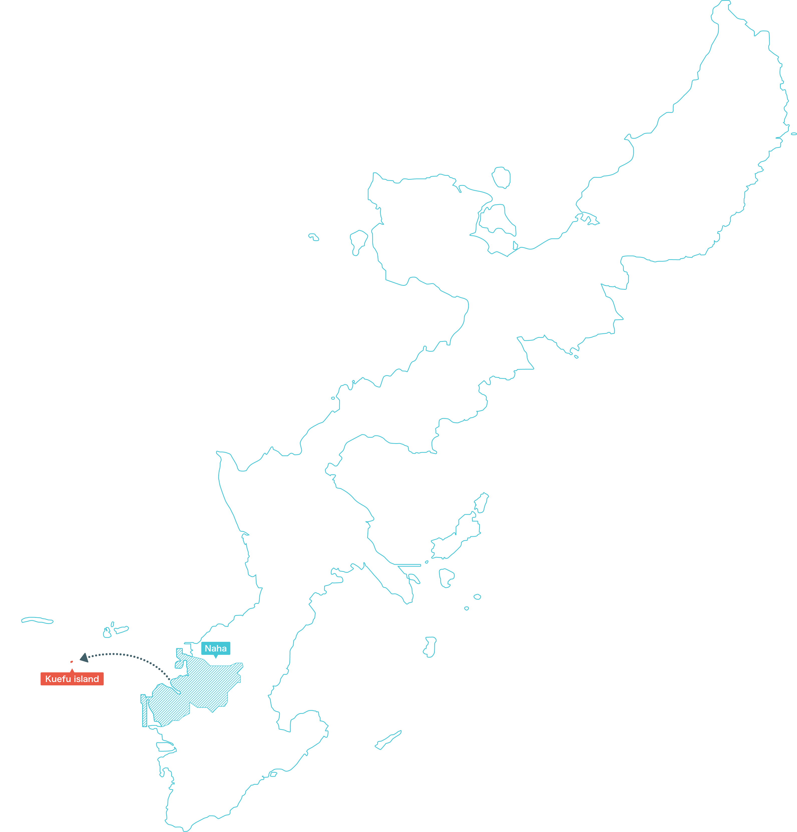 Kuefu Island is the smallest isolated island in Chibishi Atoll (Chibishi Islands), located about 12km west of Naha City on Okinawa's main island, about a 20-minute boat ride away.